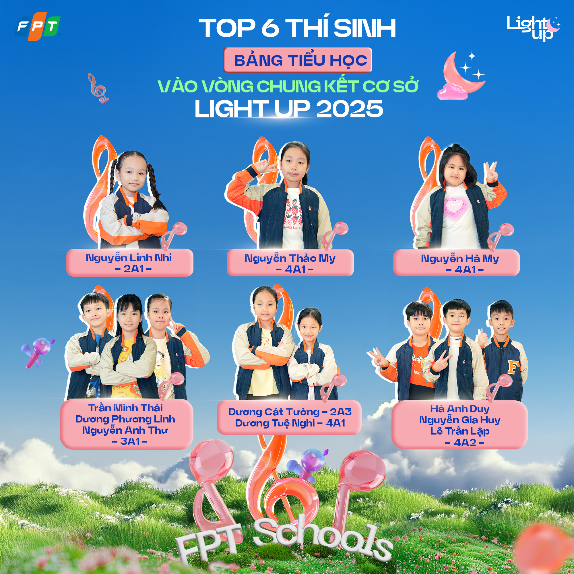 Sau quá trình làm việc và đánh giá công tâm, Ban Giám khảo đã lựa chọn 9 đội thi xuất sắc nhất đến từ hai cấp học Tiểu học và THCS để bước tiếp vào Vòng Chung kết cấp cơ sở Light Up 2025.