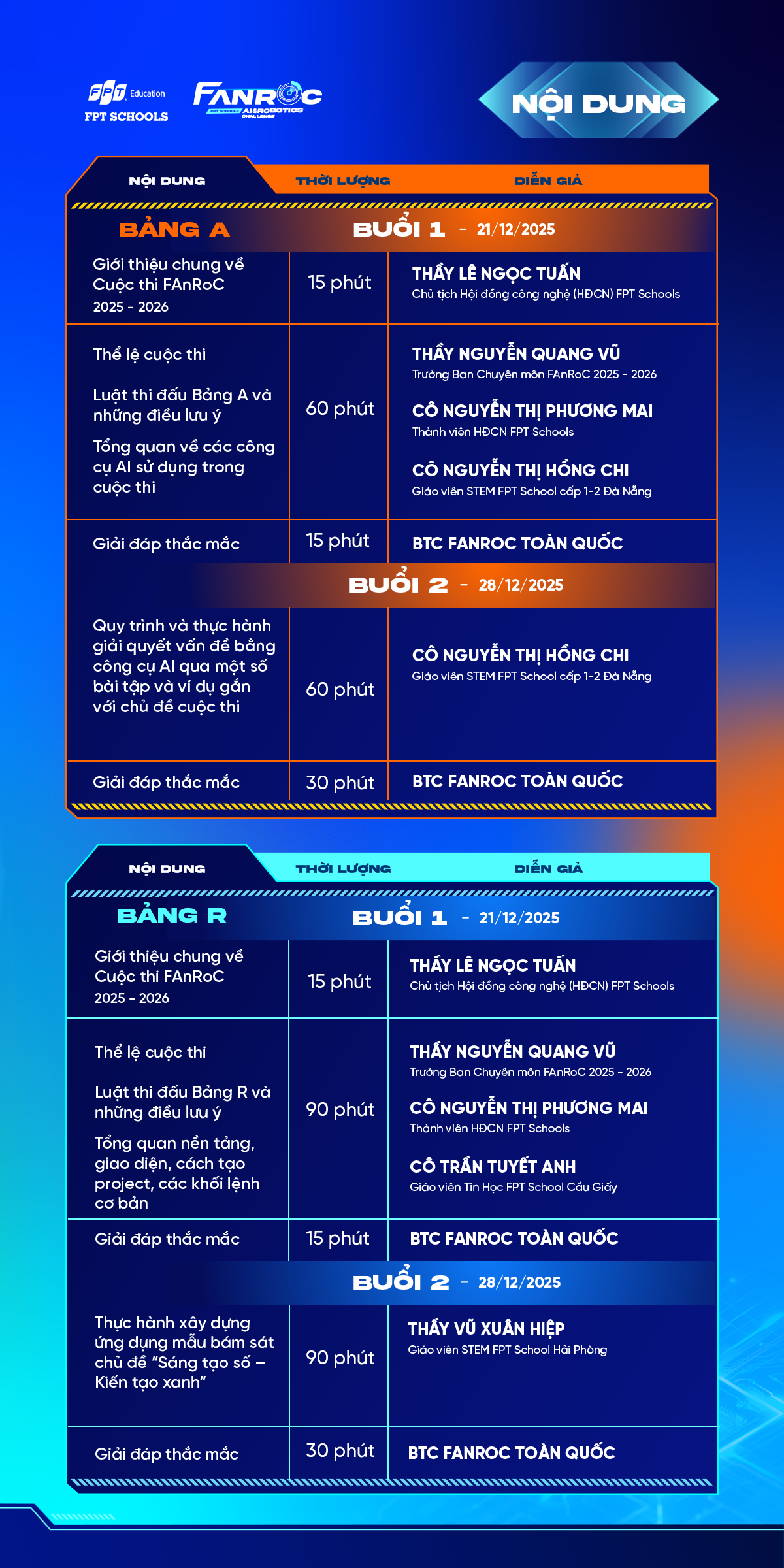 Chương trình dành cho các đội thi thuộc Bảng A và Bảng R, bao gồm: