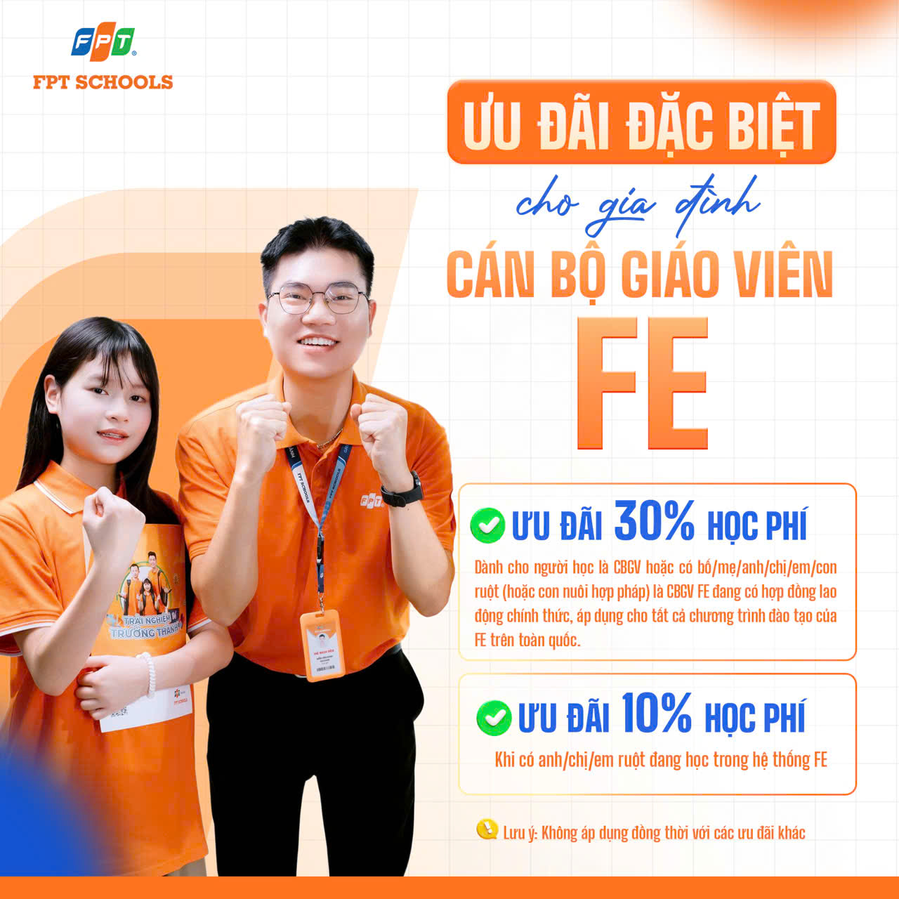 1. Ưu Đãi Học Phí Dành Cho Gia Đình Cán Bộ Giáo Viên FE
